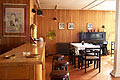 - Construído con una fina carpintería en las maderas más nobles de la zona. Bases de Ciprés, pisos y forros de Mañío y Alerce. Sus puertas, mamparas y ventanas son valiosas piezas de antíguos diseños.