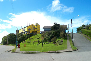 ![]() Edificio reconstruído para Hotel con fascinante estilo arquitectónico. Ubicado en la costanera de la ciudad de Ancud. Privilegiada vista panorámica al Golfo con amplios jardines para su reparador descanso. Un amplio Salón Comedor y Restaurante le esperan para disfrutar de su cocina Regional y sus variados platos Internacionales.